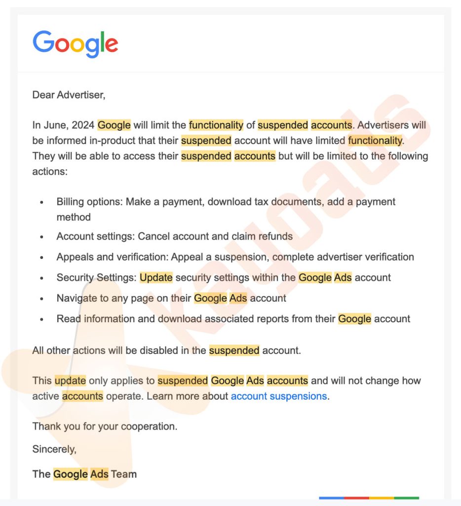 To help resolve your suspension, we’ll need access to your Google Ads account and details about your advertising campaigns. This allows us to thoroughly investigate the issue and take effective steps toward reactivation.